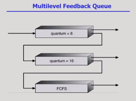 Multilevel Queue - 이 전에는 한줄로 cpu 줄 서기 였는 데 이 후부터는 여러줄로 줄을 선다