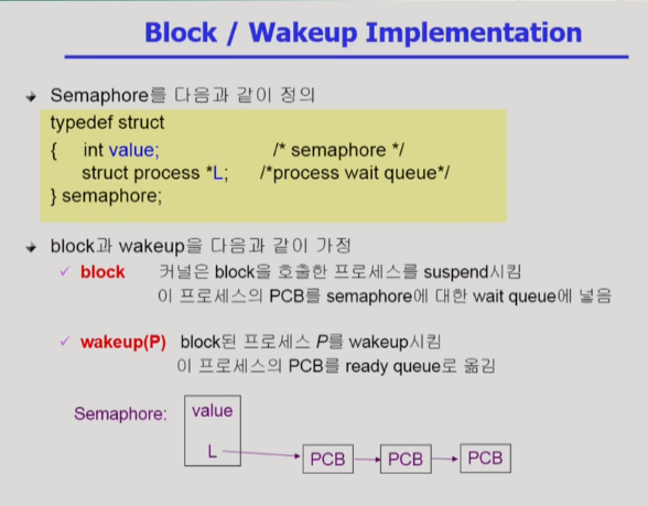- Critical section의 길이가 매우 짧은 경우 Block and wake up 오버헤드가 busy-wait 오버헤드보다 더 커질 수 있음